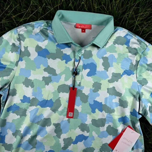 Make a bold statement on and off the course with the Redvanly Dawson Polo Shirt. Featuring a striking Blue Green Camo print, this shirt blends athletic performance with luxury. Designed with moisture-wicking and stretch fabric, it offers a comfortable, flexible fit that moves with you, ensuring maximum performance during your game. The modern athletic cut provides a sleek silhouette, perfect for the stylish golfer.Key Features: * Size: Medium * Color: Blue Green Camo * Fabric: Performance moisture-wicking and stretch material * Style: Athletic golf polo with a modern fit * Condition: Brand new with tags (NWT) * MSRP: $105Elevate your golf wardrobe with this luxury performance polo from Redvanly, designed for both style and comfort.Pit To Pit: 20"Length: 30"