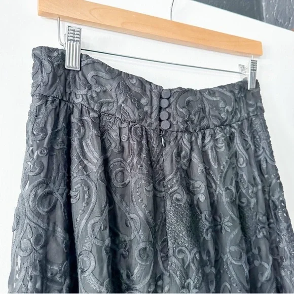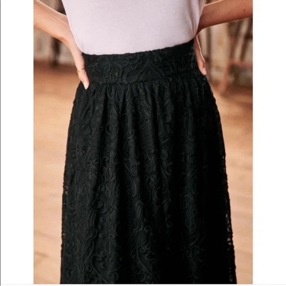 Sezane Nae Skirt Maxi Embroidered BlackSize 38 US 6Rare find!Maxi lengthLinedZip and button closure at backExcellent. No visible signs of wear.1856
