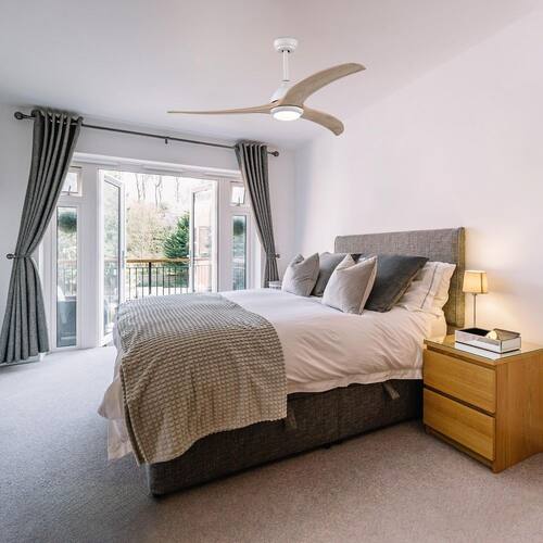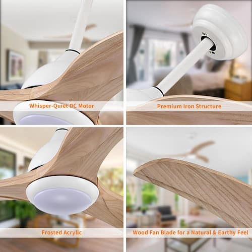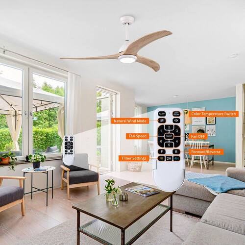 About This Product:The Taimei 52 in. minimalist ceiling fan blends contemporary design with practicality. Its elegantly curved wooden blades are ideal for both indoor and outdoor covered areas like patios and porches. Powered by an energy-efficient 6-speed reversible DC motor, this fan includes a remote control with features such as natural breeze mode, fan reversal, and timers for 1, 2, 4, or 8 hours. The integrated 18-Watt LED light offers adjustable lighting to create the perfect atmosphere. With a simple installation process, it comes with both 4.9 in. and 9.8 in. downrods, and is compatible with ceilings angled up to 16°.