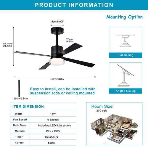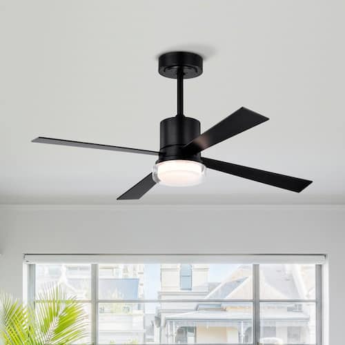 About This Product:Featuring clean lines and a minimalist design, this 48 in. fan light with 4 blades adds a sleek and contemporary touch to any space. Its reversible motor ensures optimal comfort throughout the year, providing cooling during the Summer and circulating warm air in the Winter. With a 6-speed remote control, this fan offers convenient features like a timer function and dimmer control, allowing you to easily personalize the temperature and airflow in your home with just a push of a button. Enjoy the perfect blend of style and functionality with this modern fan light.