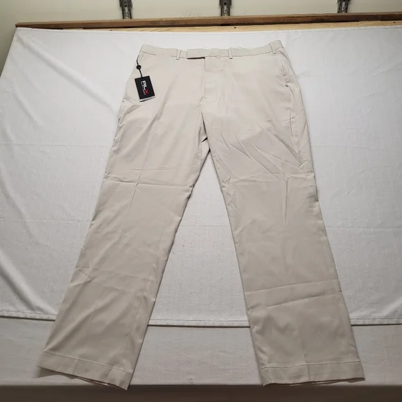 Item is new with tagsno stains holes rips fraying damageLightweight performance golf pantfit is regular straightcolor is a light beigemeasures true to tagplease see pictures for size and detailsthanks!