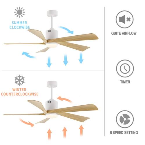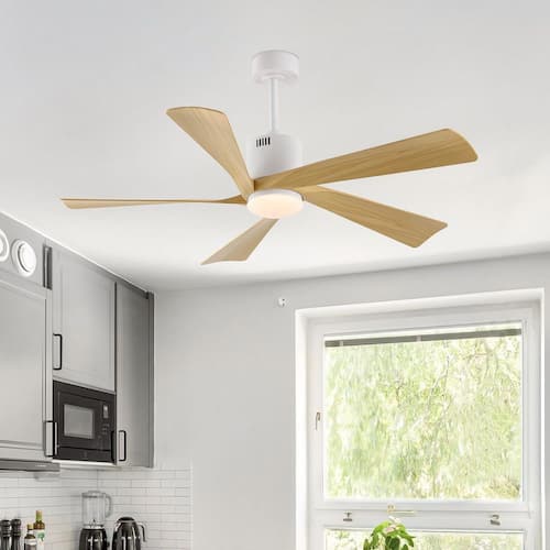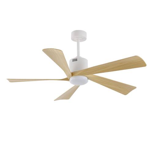 About This Product:Elevate your home´s ambiance with this sleek, modern ceiling fan that blends style, functionality, and smart technology. Featuring 5-gracefully curved blades available in dark walnut, natural wood or grayish white finish, this fan adds a touch of elegance to any room. The matte black/white/gold motor housing creates a striking contemporary contrast, while the integrated LED light kit offers energy-efficient illumination. This innovative ceiling fan offers seamless integration with a user-friendly mobile app for effortless control from anywhere. Perfect for living rooms, bedrooms, or dining areas, this ceiling fan ensures optimal air circulation and a comfortable environment year-round.