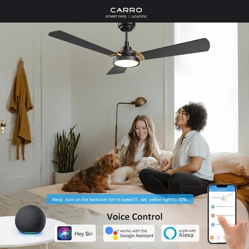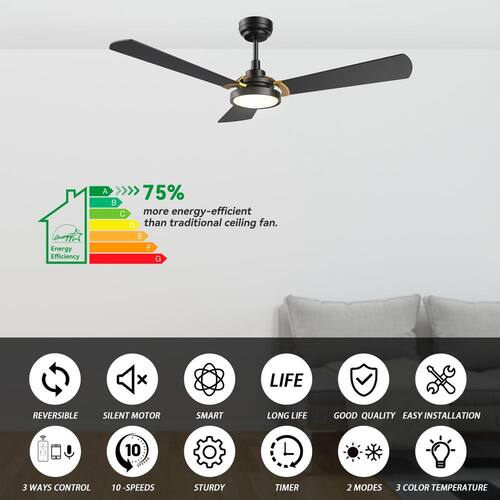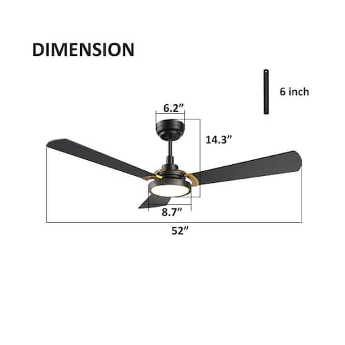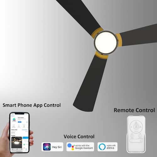 About This Product:This Veter 52 in. smart ceiling fan keeps your space cool, bright and stylish. It is a soft modern masterpiece perfect for your large indoor living spaces. This Wi-Fi smart ceiling fan is a simple design with blackandgold finish, using high quality plywood blades and has an integrated 4000K daylight LED. The fan features remote control, Wi-Fi apps and Voice Control Technology (compatible with Alexa and Google Home Assistant, but not included) to set fan preferences.