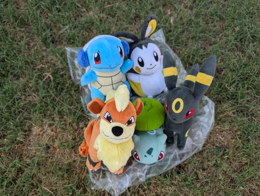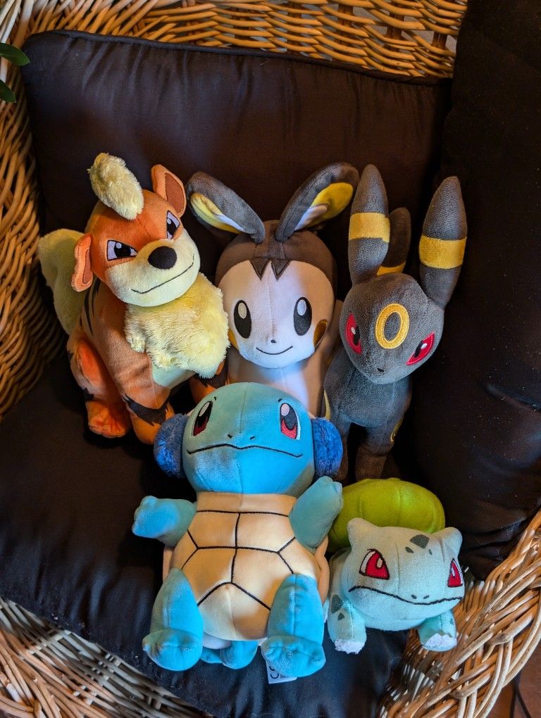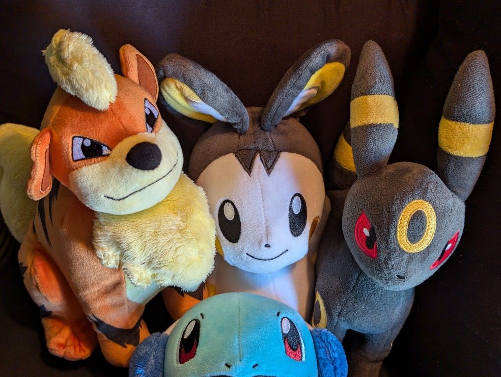 Dive into nostalgia with this rare Pokémon plush collection! Perfect for any fan or collector, this lot features:Bulbasaur - Toy Factory 2019Emolga - WCT 2019Umbreon - WCT 2019Growlithe - WCT 2019 (Rare find!)Winter Squirtle - WCT 2019Each plush is in wonderful condition, having been previously enjoyed but carefully maintained. These sought-after pieces are seldom found together and would make a fantastic addition to any collection. Don’t miss out on the chance to own this exceptional set of Pokémon plush!