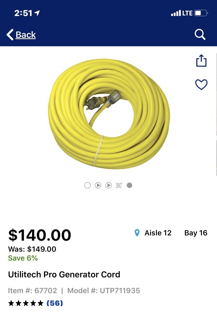 UtilitiTech Pro Generator cord