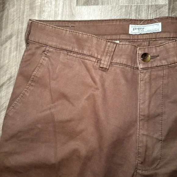 Item is preowned. Color is Brown. Material is Cotton (98%) and Elastane (2%). Size is a Men´s 38 (Measures 37).Inseam Measurement - 30.5”Total Length - 41”Leg Opening - 9”Rise - 12”MS3295