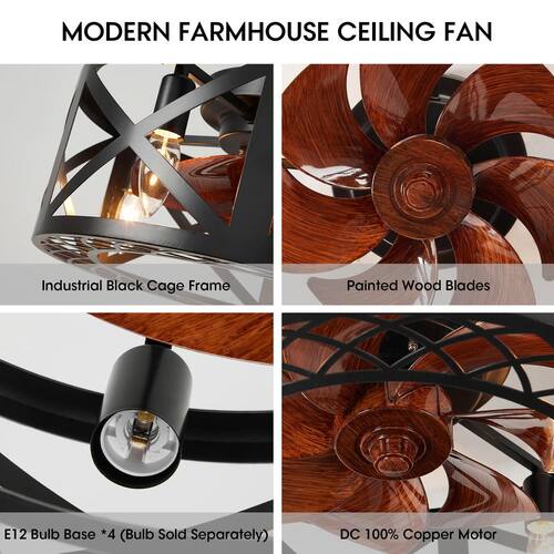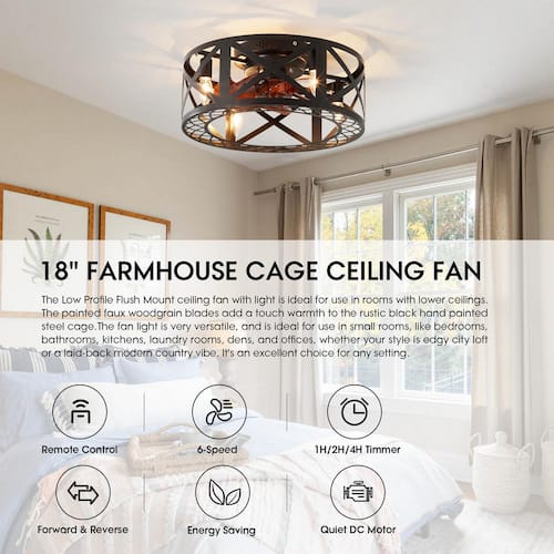 About This Product:This black cage ceiling fan is sure to sure to make a statement in your bedroom or any small space in your home. The black fan light is easily controlled by remote, surely a statement piece for your kitchen, dining room, living room, bedroom or foyer. The eye-catching yet functional design is the perfect addition whether your style is edgy urban loft or a laid-back modern country.