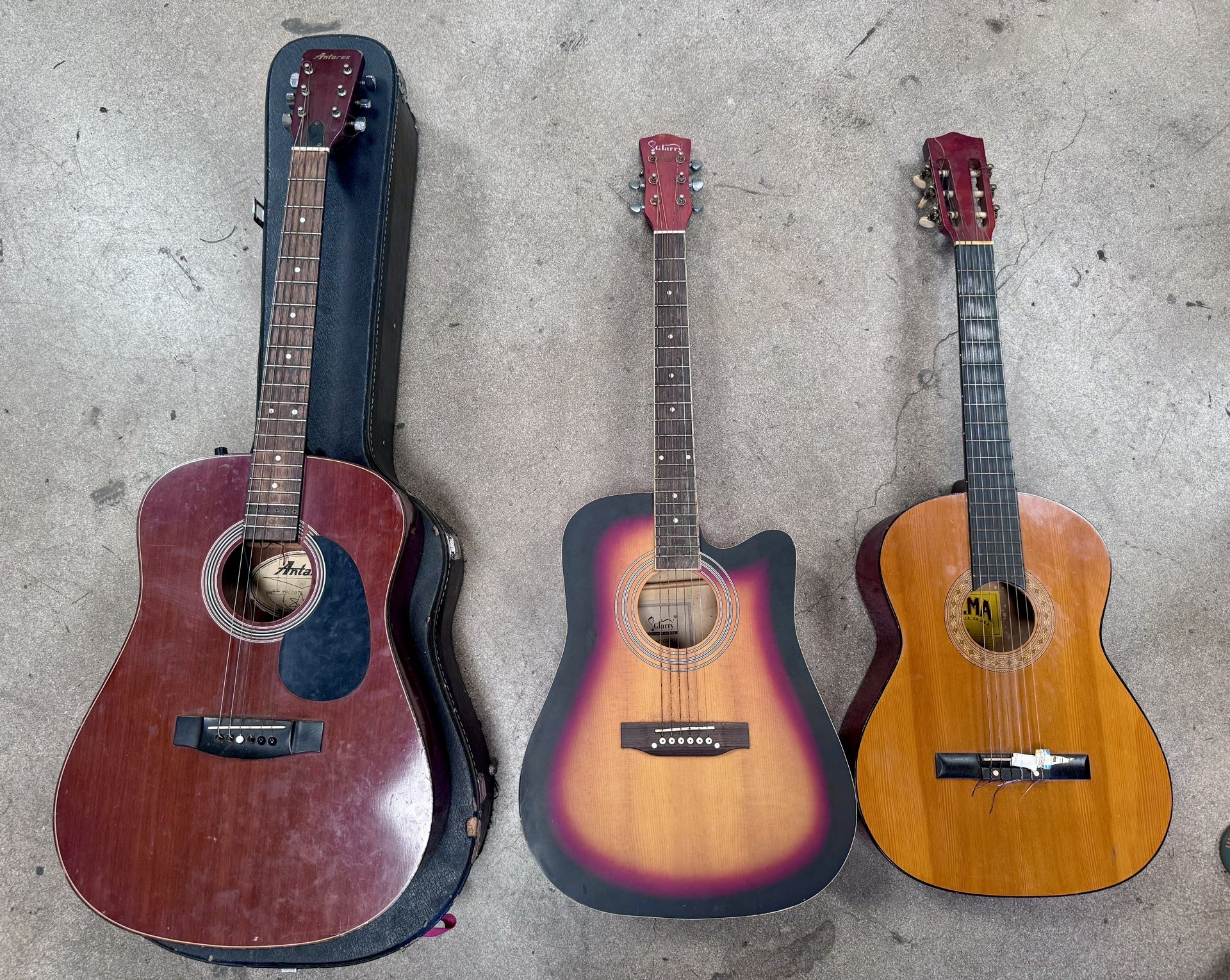 All three guitars will need to be restrung but I don’t see any other noticeable issues. The electronics on the Antares was pulled. Hard shell is included. See photos for details. I’m selling all together.