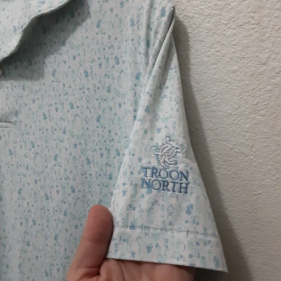 in great pre-owned condition all over print, people dancing and playing musicchest = 22 incheslength = 28inchesTROON North patch on sleeveC